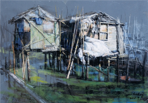 【最佳风景奖】 第8期 金海洪 《鱼簖》54×78cm 2015 浙江嘉兴