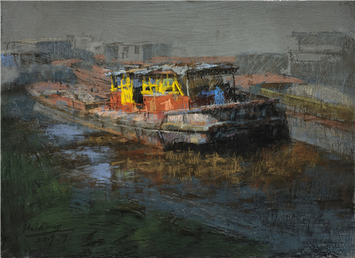 △ 金海洪 《铁驳船系列12》 51×70cm