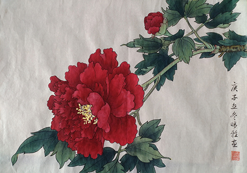 △ 汪晴雅《牡丹》工笔画 30×42cm